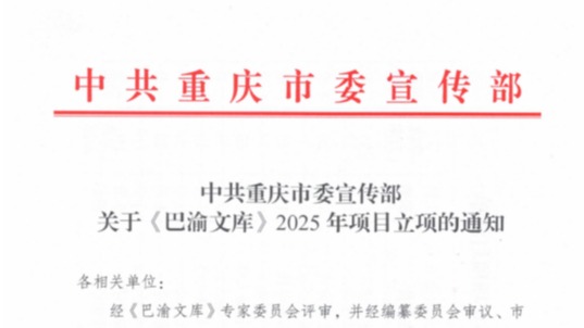 2025年8月,中共重庆市委宣传部公布了2025年度《巴渝文库》研究项目立项名单,...